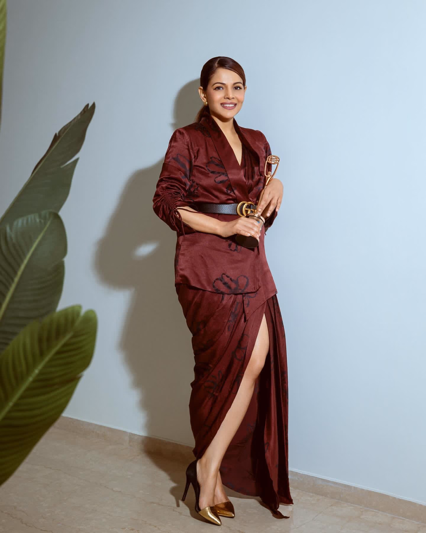 A pre-draped slit saree crafted from our signature silk georgette fabric, featuring an exquisite in-house print and elegantly draped to perfection.