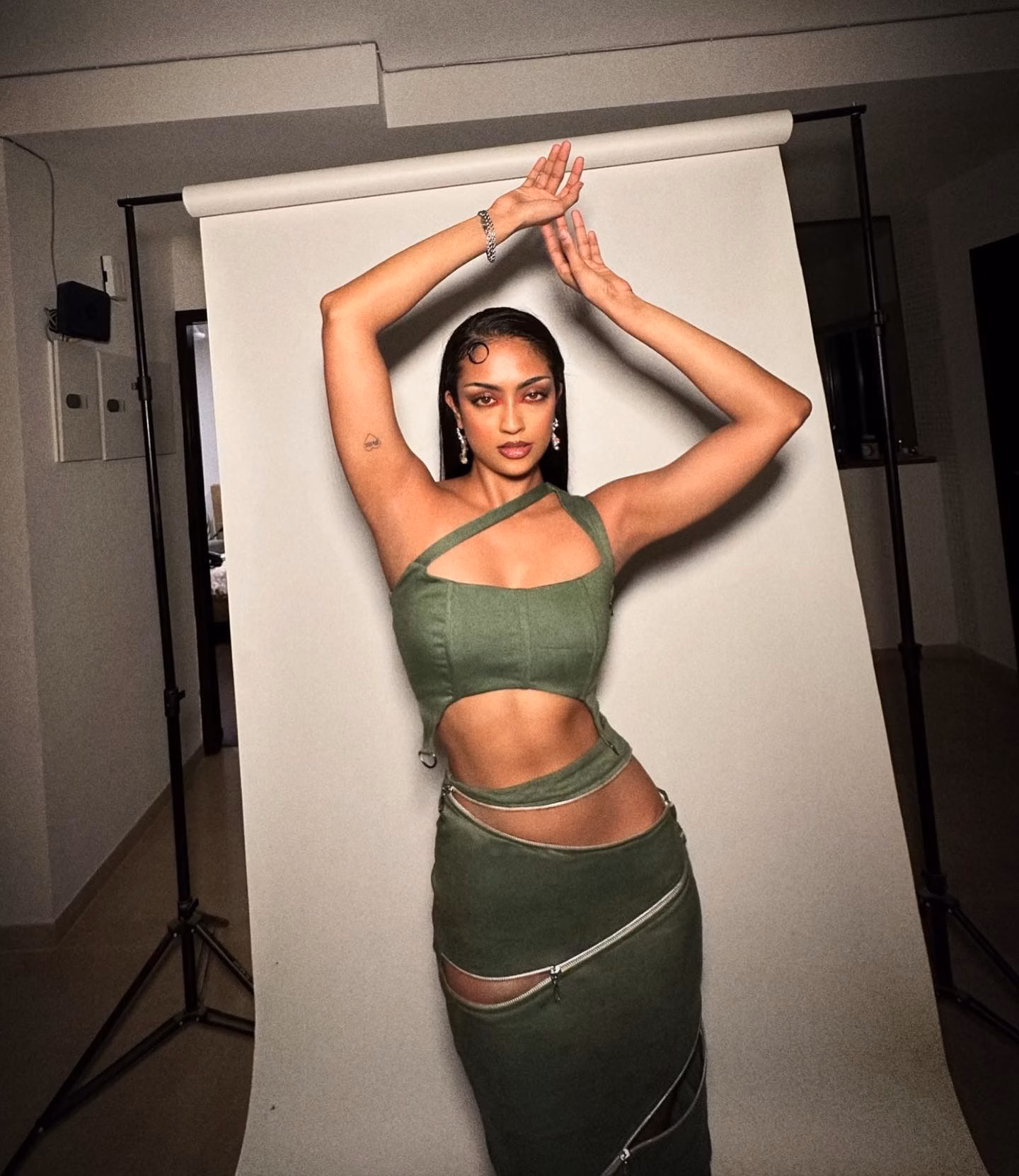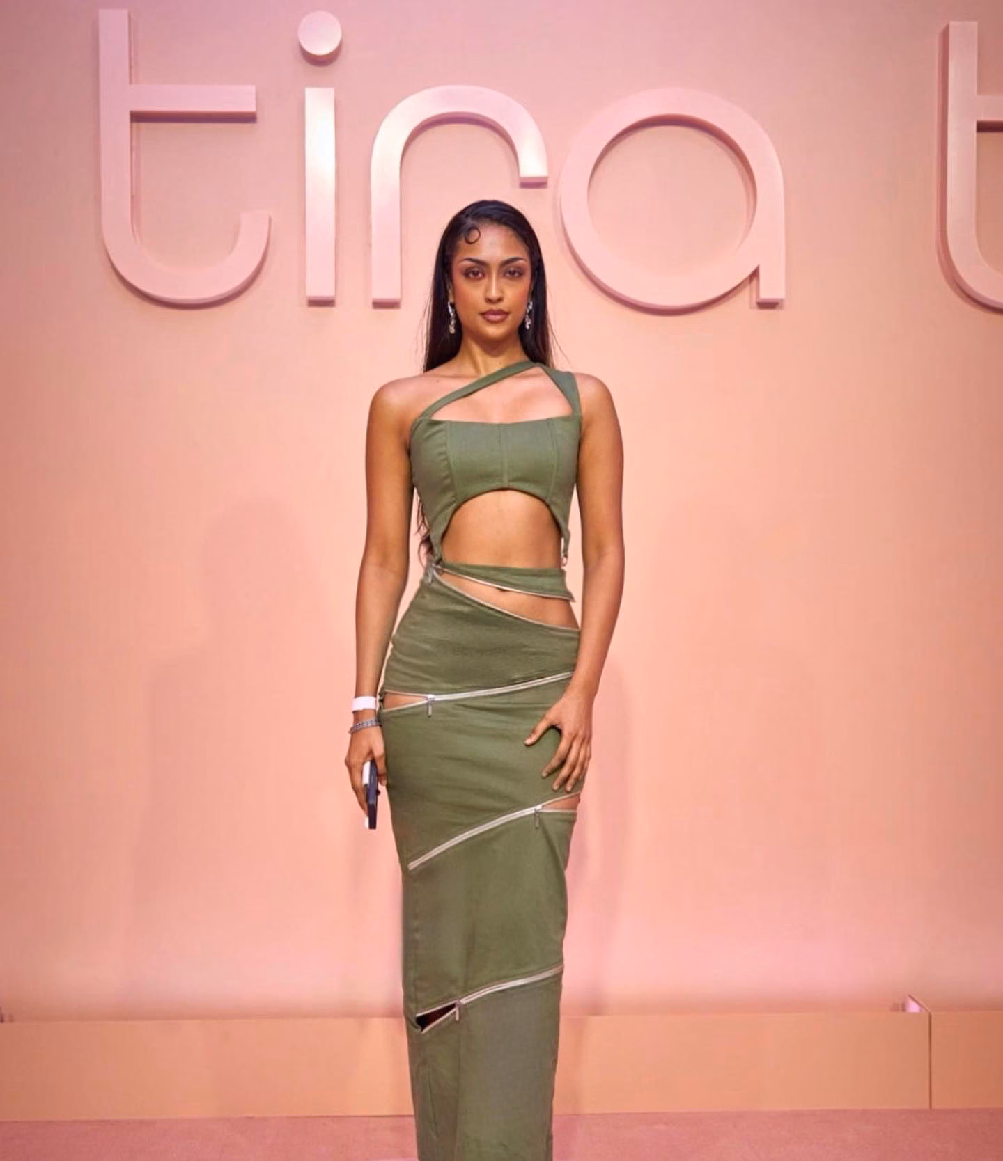 Asymmetrical long skirt with zipper cut-outs