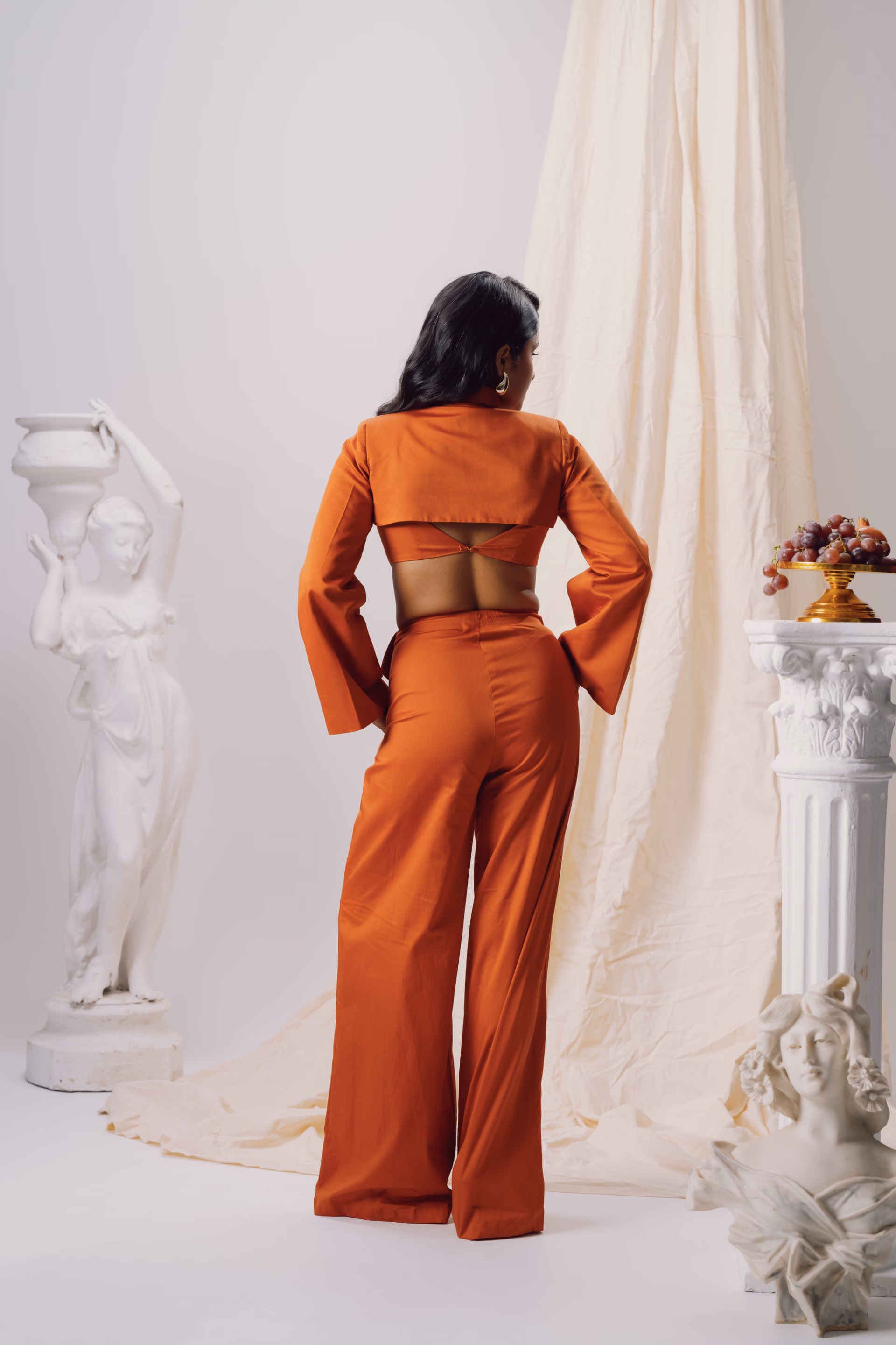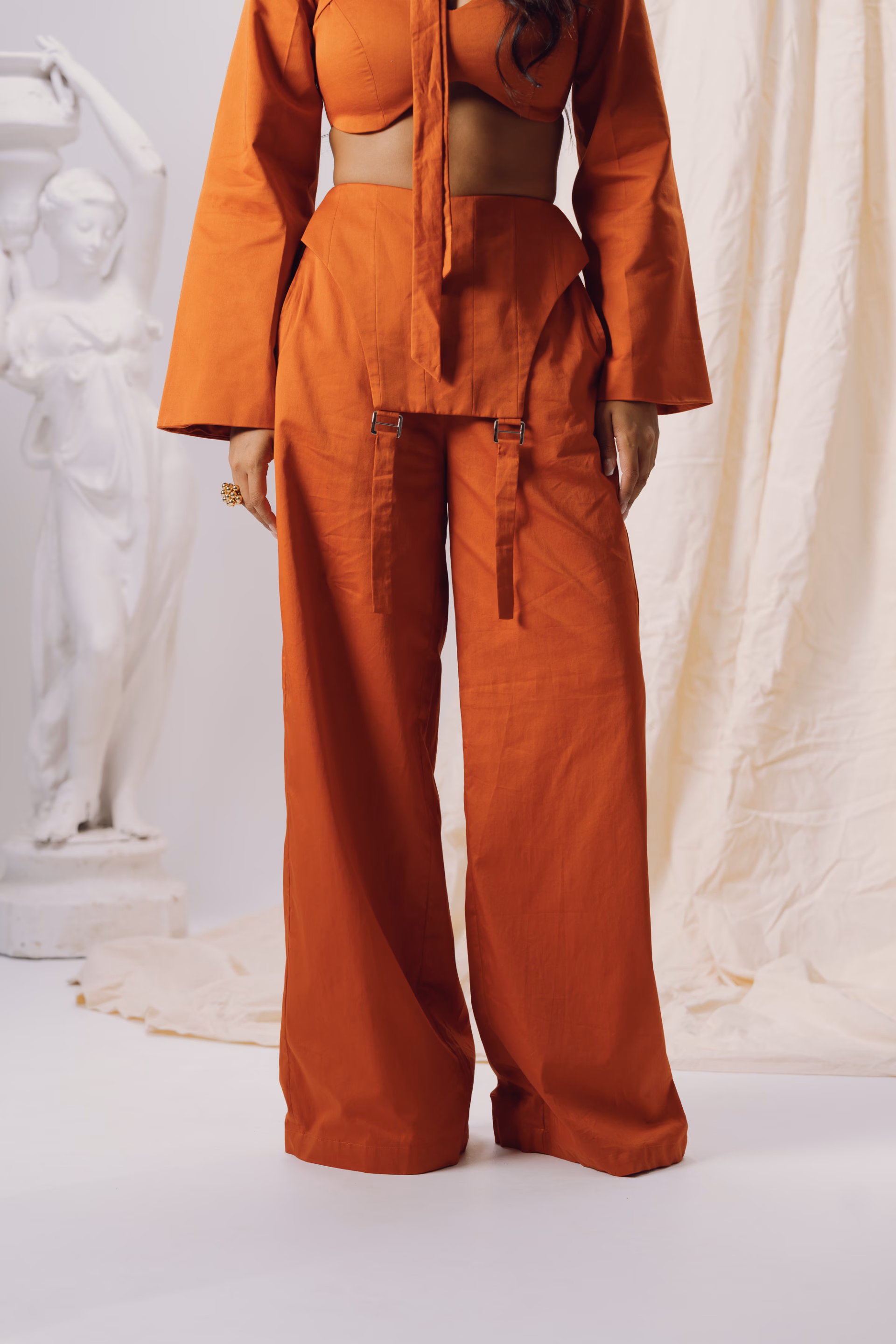 These relaxed-fit pants are tailored in structured glaze cotton, featuring a distinctive reverse dungaree panel detail that adds dimension to the high-rise silhouette. Side pockets and a clean side opening offer functionality without compromising form. A utilitarian twist on classic tailoring, this piece from the Genesis Pre-Fall 2025–26 collection reflects the balance of comfort and construction at the core of the season’s vision.